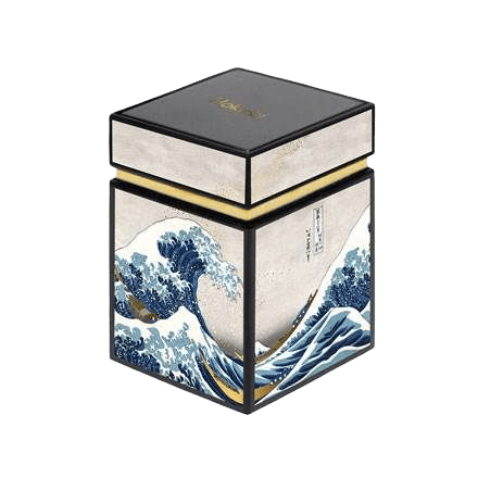 Boîte métallique représentant la célèbre vague de Kanagawa, de l’artiste japonais Hokusaï pour conserver vos thés et infusions préférés. Peut contenir entre 50g et 100g de thé. Dimension : 75mm x 75mm x 110mm.