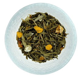 Agrémenté de fleurs de souci, de canneberges et de morceaux de mangue, ce mélange de thé noir d’Inde et de Ceylan et de thé vert de Chine parfumé à la papaye vous séduira.