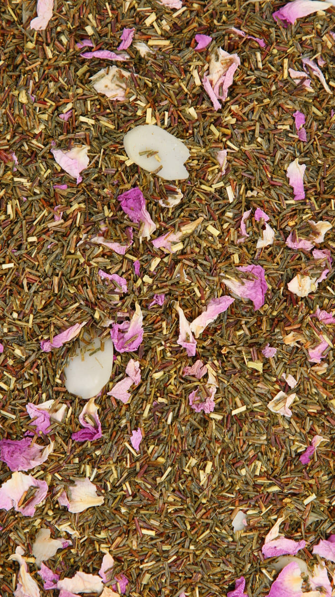 Rooibos vert*, rooibos rouge*, AMANDES*, pétales de rose* arôme naturel de vanille, arôme naturel d'AMANDE, arôme naturel de pamplemousse